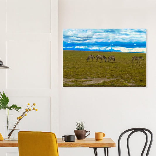 Amboseli Grazing Zebras (50x70 cm / 20x28″ - Horizontal - Slim Canvas)